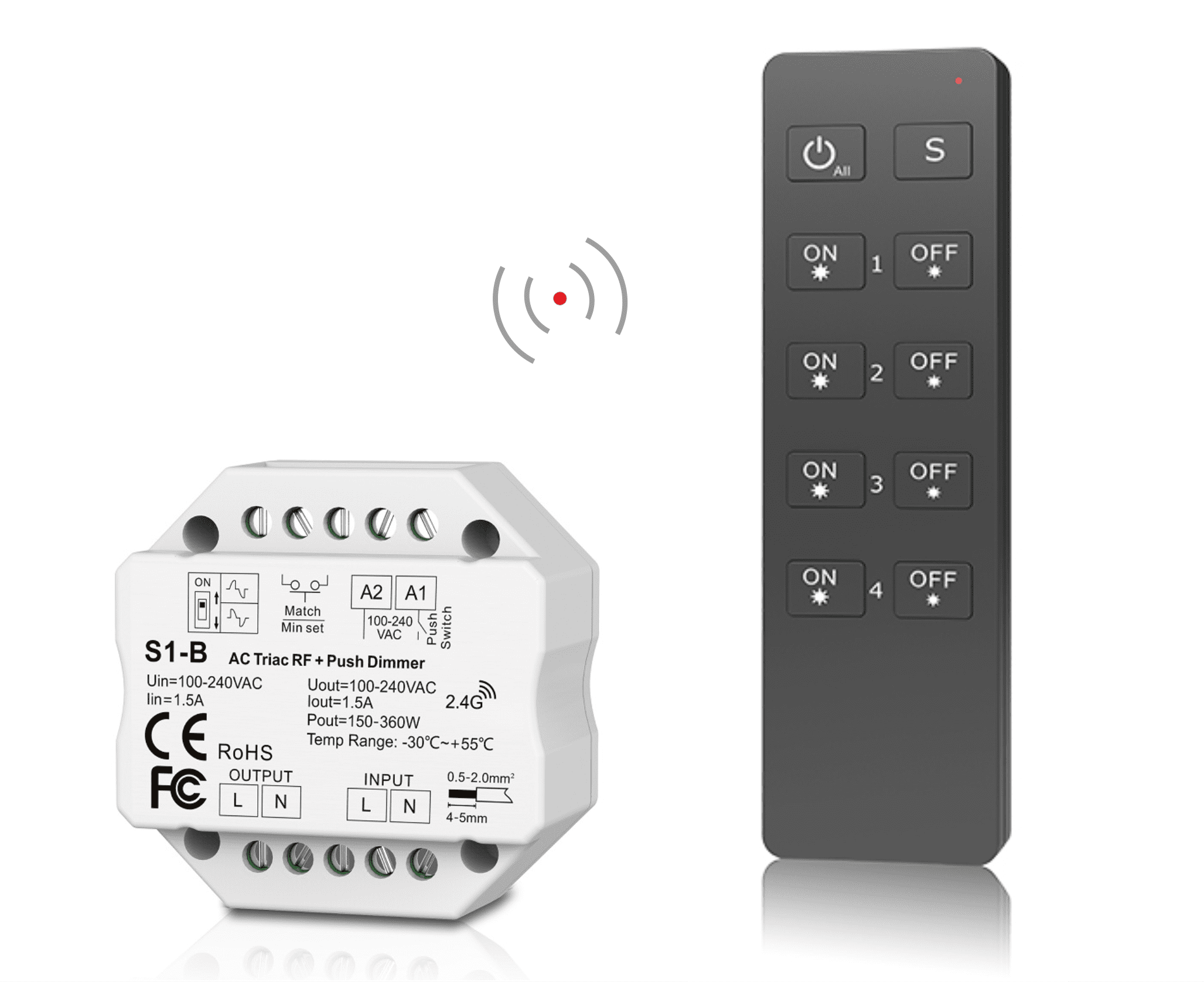 Dimmer + radio remote control set (4-zone remote control, so you can expand it with other S1-B devices)